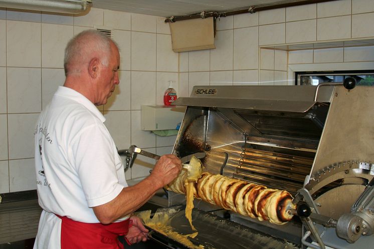 Baumkuchen Schaubacken wird bei Rainer Weißbach in Schwarzenberg gezeigt