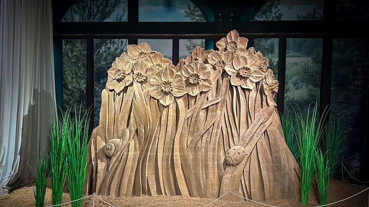 Das Ergebnis: 150 Tonnen Sand, also so viel Gewicht viel wie etwa 50 Elefanten, und unzählige Pflanzen und Blüten vereinen sich nun auf rund 1000qm im Indoor-Ausstellungsareal zu einer faszinierenden Frühlingskulisse. Der Rundgang startet mit einem verfilmten Eindruck davon, wie 3 internationale Sandkunst-Experten seit Februar ihre Kunstwerke per Verschalungs- und Verdichtungstechnik vorbereiteten. Anschließend starten die insgesamt ca. 400-stündigen Schnitzarbeiten, von oben nach unten, Etage für Etage bei 3 bis 4 Metern Höhe jeder einzelnen Skulptur. Die zum Projekt passenden SandkünstlerInnen wurden im Vorfeld sorgfältig ausgewählt, da jede/r von ihnen eine ganz besondere Handschrift trägt. Die Italienerin Michela Ciappini, mit über 20 Jahren Erfahrung in der Sandkunst, ist beispielsweise eine Spezialistin in sehr realistischen Darstellungen und zeigte ihr Können an einer japanischen Kirschblütenszene und einem detaillierten Alpenpanorama. Die anderen beiden Künstler aus der Schweiz und Tschechien zeigten ihr Handwerk beim Schnitzen von gigantischen Narzissen oder einzigartigen Tierfiguren.
