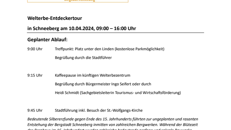 Welterbe-Entdeckertour in Schneeberg am 10. April 2024