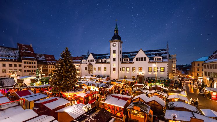 Die Bergstädte mit ihren traditionellen Weihnachtsbäumen, Lichterketten und Pyramiden erstrahlen im weihnachtlichen Glanz. Gemütlichkeit und Heimatgenuss erleben Gäste auf den zahlreichen kleinen und großen Weihnachtsmärkten überall im Erzgebirge. www.erzgebirge-tourismus.de/weihnachtsmaerkte-im-erzgebirge/