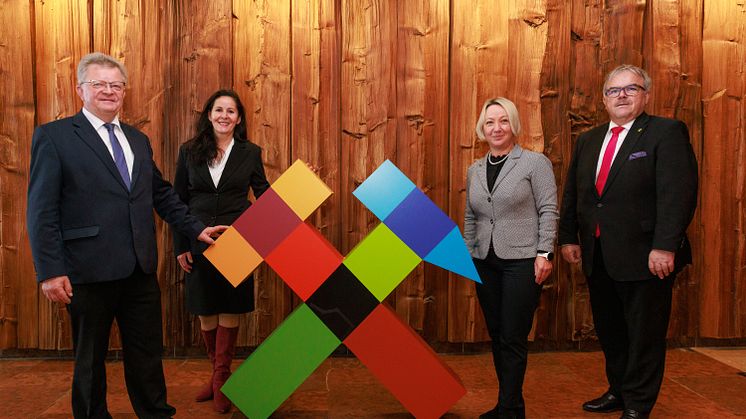 im Bild von links nach rechts: Matthias Lißke - Geschäftsführer Wirtschaftsförderung Erzgebirge GmbH, Dr. Peggy Kreller - Projektleiterin Regionalmanagement Erzgebirge, Ines Hanisch-Lupaschko - Geschäftsführerin Tourismusverband Erzgebirge e.V., Landrat Frank Vogel