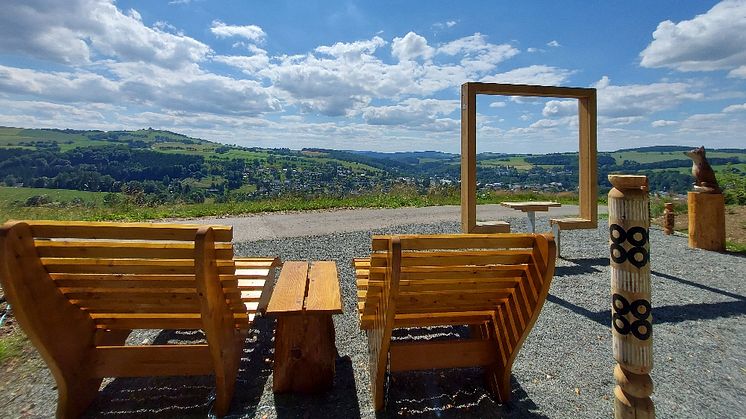 Die wundervoll gestalteten BLOCKLINE-Standorte laden zum Ausruhen und Verweilen ein. Am Motivmeilenstein Fuchs darf man zum Beispiel Platz auf der Holzliege nehmen, die Aussicht genießen und den Moment im großen Fotobilderrahmen festhalten.