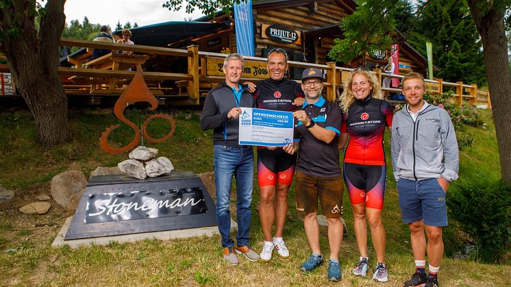 Der Tourismusverband Erzgebirge e.V. (TVE) nahm diese Gelegenheit zum Anlass und spendete für jeden der 15 Starter 29 Euro der Startgebühr bzw. zehn Cent je zurückgelegten Kilometer an den Elternverein krebskranker Kinder e.V. Chemnitz. Somit konnte die Summe, die auf 450 Euro aufgerundet wurde, in Form eines Schecks an den Schirmherrn des Vereins, Jens Weißflog, übergeben werden.
